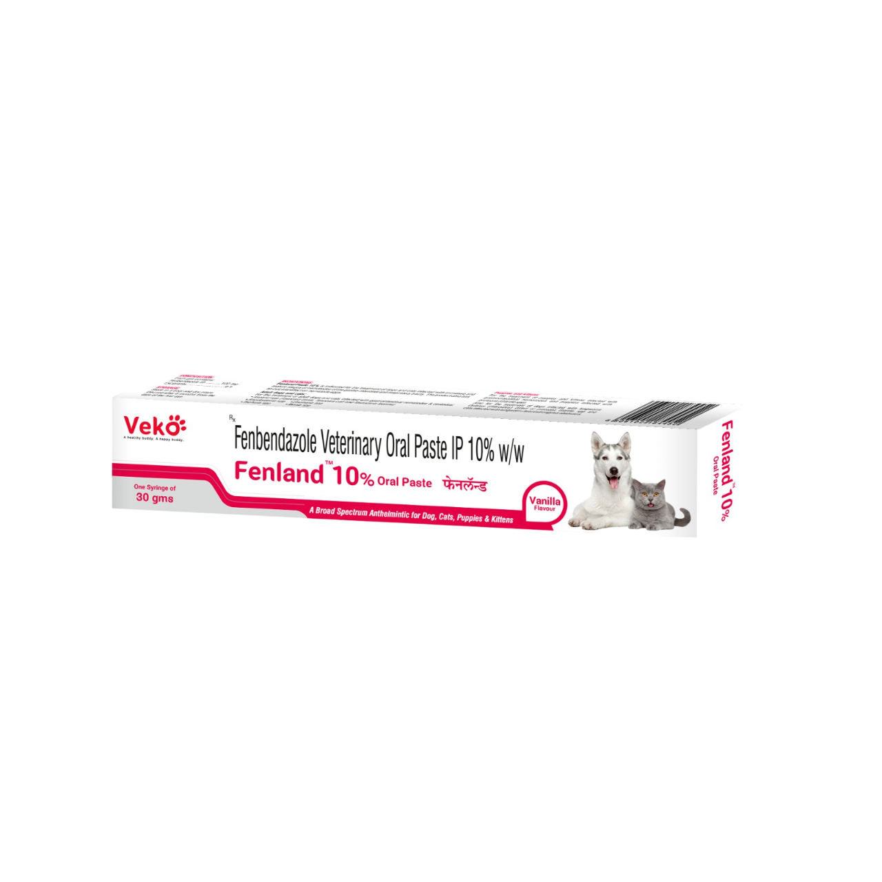 FenLand Paste 10 % is indicated for the for the treatment of dogs and cats infected with immature and mature stages of nematodes of the gastro-intestinal and respiratory tracts. The product also has an ovicidal effect on nematode eggs.